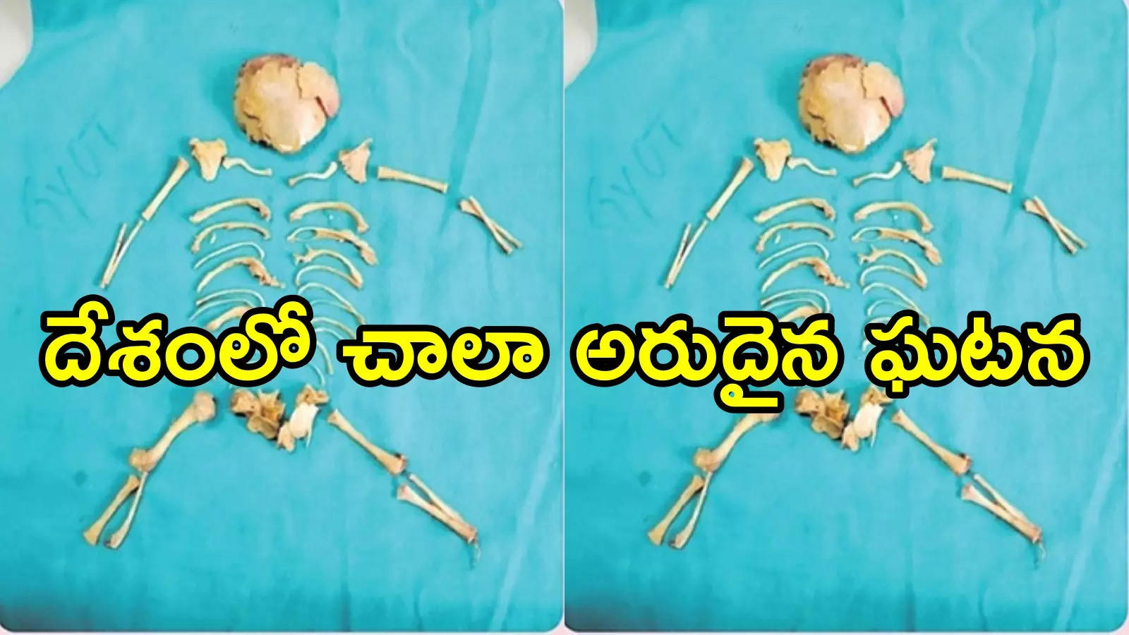 Skeleton In A Womans Womb At Visakhapatnam: అనకాపల్లి జిల్లాకు చెందిన మహిళకు కడుపునొప్పి రావడంతో విశాఖపట్నం కేజీహెచ్కు వెళ్లారు. అక్కడ స్కాన్ చేయించిన డాక్టర్లు కడుపులో కణిత వంటిది ఉన్నట్లు గుర్తించారు. ఎంఆర్ఐ స్కాన్ చేయించి చూస్తే.. 24 వారాల శిశువు ఎముకల గూడు ఉన్నట్లు గుర్తించారు. అప్పుడు ఆరా తీసిన డాక్టర్లకు అసలు విషయం తెలిసింది.. వెంటనే సర్జరీ నిర్వహించి దానిని బటయకు తీశారు. మహిళ కోలుకోగానే డిశ్చార్జ్ చేస్తామన్నారు డాక్టర్లు.