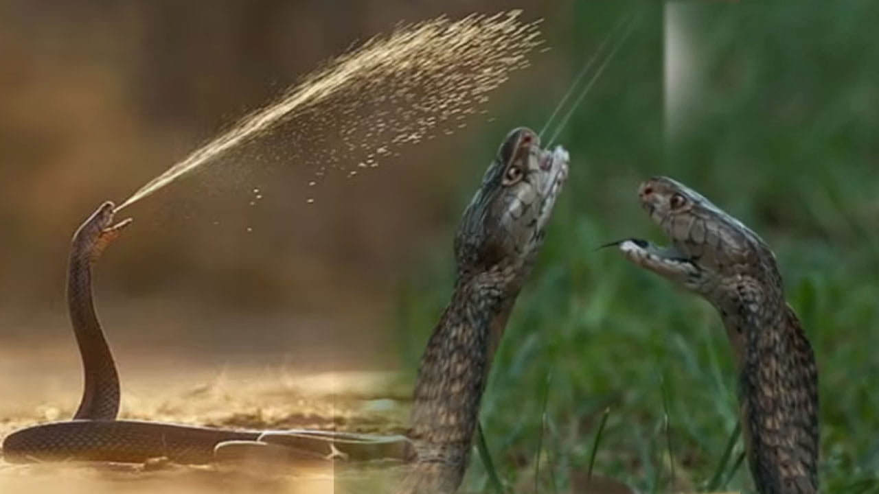 కింగ్ కోబ్రా.. వాస్తవానికి ఇది అత్యంత విషపూరితమైన పామే.. ఇది కాటు వేయడంతోపాటు విషాన్ని చిమ్ముతుంది.. ఇది విషాన్ని రెండు లేదా మూడు మీటర్ల దూరం చిమ్మగలదు.. ఆఫ్రికాలో కనిపించే ఏడు కోబ్రా రకాల్లో నాలుగు.. ఆసియాలో కనిపించే తొమ్మిదిలో ఏడు విషాన్ని చిమ్మగలవు. ఇవి సాధారణంగా రక్షణ కోసం చిమ్ముతాయి.. అంతేకాకుండా కాటు వేసే సమయంలో కూడా విషాన్ని చిమ్మగలవు.. అత్యంత ప్రాణాంతకమైన మాంబాస్, క్రైట్స్, కోబ్రాస్, వైపర్స్ లాంటివి విషాన్ని చిమ్ముతాయని వైద్యులు చెబుతున్నారు.