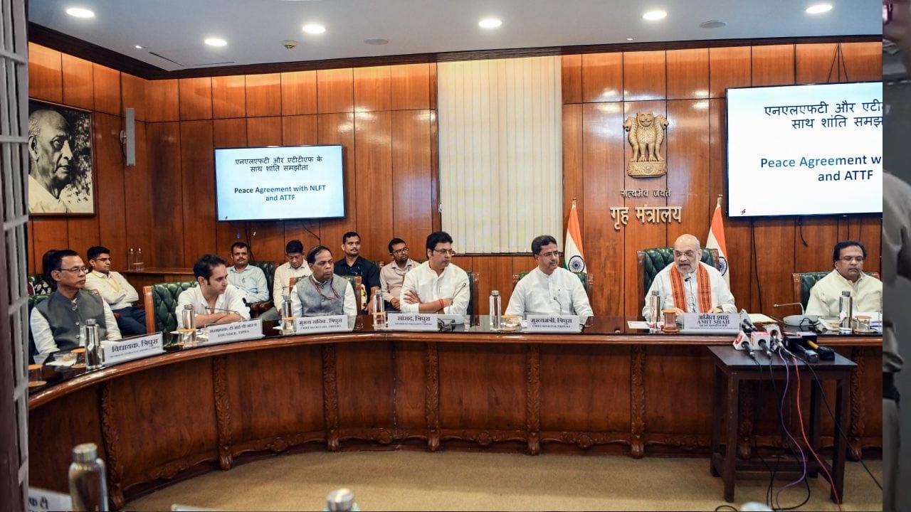 ఢిల్లీలో కేంద్ర ప్రభుత్వానికి, త్రిపురకు చెందిన తీవ్రవాద సంస్థలకు శాంతి ఒప్పందం జరిగింది. త్రిపురకు చెందిన నేషనల్ లిబరేషన్ ఫ్రంట్ ఆఫ్ త్రిపుర, ఆల్ త్రిపుర టైగర్ ఫోర్స్ సంస్థల ప్రతినిధులతో కేంద్ర ప్రభుత్వం, త్రిపుర ప్రభుత్వం శాంతి ఒప్పందాలపై సంతకాలు చేశాయి. కేంద్ర హోంశాఖ మంత్రి అమిత్ షా, త్రిపుర సీఎం మాణిక్ సాహ సమక్షంలో ఈ ఒప్పందాలు జరిగాయి. 30 ఏళ్ల సాయుధ పోరాటానికి ముగింపు పలుకుతున్నామని ఎన్ఎల్ఎఫ్టీ స్పష్టం చేసింది. హోంమంత్రిపై తమకు పూర్తి నమ్మకం ఉందని తెలిపింది. తాము ప్రభుత్వాన్ని విశ్వసిస్తున్నామని ఎన్ఎల్ఎఫ్టీ సభ్యులు తెలిపారు.