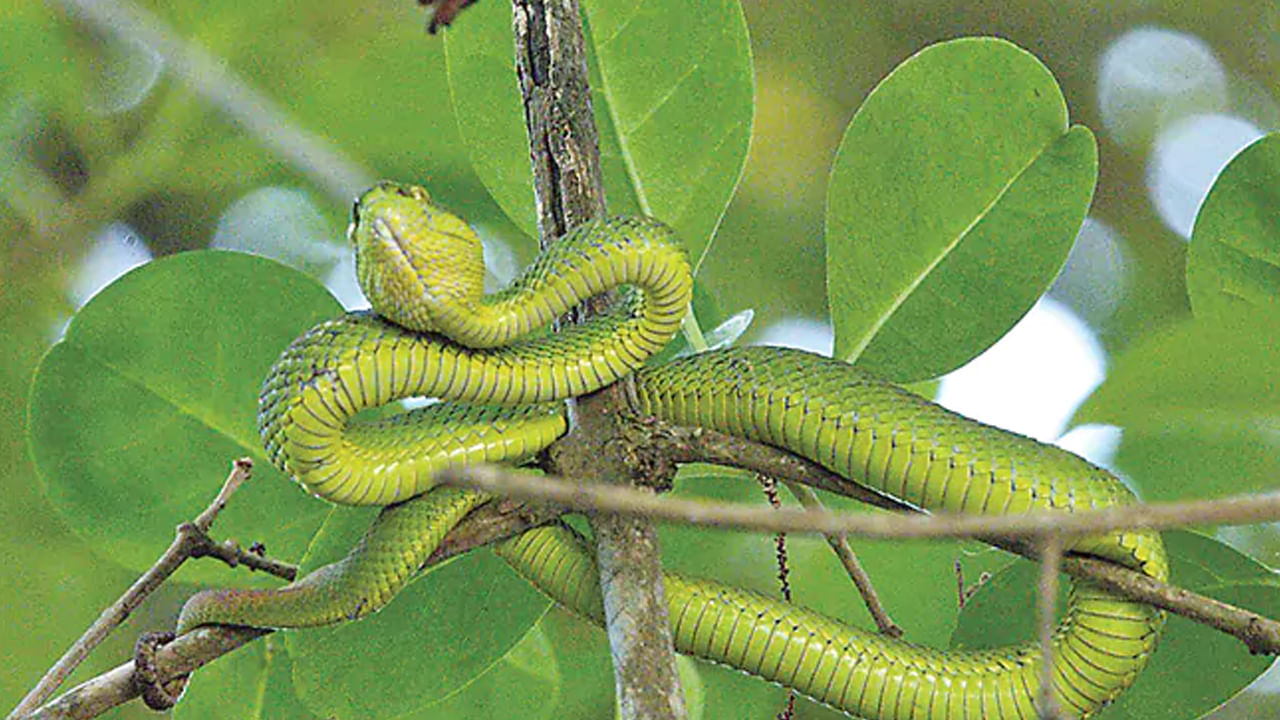 ఏంటి మీరు దీన్ని పసరిక పాము అనుకున్నారా..? అయితే పప్పులో కాలేసినట్లే.. ఈ పాము పేరు పేరు స్పాట్ టెయిల్డ్ పిట్ వైపర్. అత్యంత విషపూరితమైనది. కాటేస్తే ప్రాణానికే ప్రమాదం. అయితే ఈ పాము అంతరించిపోయే దశంలో ఉంది. వన్యప్రాణి సంరక్షణ చట్టం 1978 ప్రకారం ఈ పాము నాలుగో షెడ్యూల్లో ఉండగా.. వాటి ఉనికిని కాపాడేందుకు 2022లో ఒకటో షెడ్యూల్లోకి మార్చారు. పాములు చిత్తడి నేలల్లో ఎక్కువగా జీవనం సాగిస్తాయి. ఈ పాము కాటు పడితే.. లోపల బ్లడ్ క్లాట్స్ ఏర్పడతాయి. దీంతో బ్రెయిన్ డెడ్ అవ్వడం, హార్ట్ అటాక్, కోమాలోకి వెళ్లడం వంటివి జరుగుతాయి. అయితే ఈ పాములు సంతతి చాలా తక్కువగా ఉండటంతో.. ఇటీవలి కాలంలో అలాంటి కేసులు ఏమీ నమోదు కాలేదు. పొడ పాము జాతికి చెందిన ఈ పాములు పగటి పూట పూర్తిగా నిద్రలో ఉంటాయి, రాత్రి వేళ వేటకు బయలుదేరతాయి.