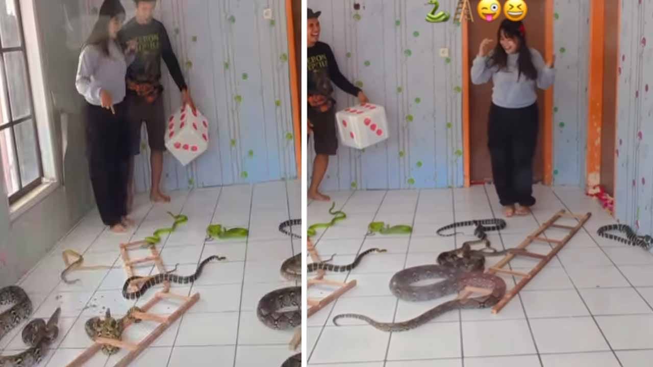మీరు మీ చిన్నతనంలో వైకుంఠపాళి అదేనండీ.. స్నేక్ అండ్ లాడర్ గేమ్ను చాలానే ఆడి ఉంటారు, కానీ స్నేక్ అండ్ లాడర్ గేమ్ను నిజమైన పాములతో ఆడవచ్చని మీరు ఎప్పుడైనా అనుకున్నారా? ప్రస్తుం ఇలాంటిదే, సోషల్ మీడియాలో ఒక వీడియో వైరల్ అవుతోంది. ఇది చూసే జనానికి వెన్నులో వణుకు పుట్టిస్తోంది. సోషల్ మీడియాలో వైరల్ అవుతున్న వీడియోలో, ఒక అమ్మాయి, అబ్బాయి ఒక గదిలో నిజమైన పాముల మధ్య స్నేక్ అండ్ లాడర్ ఆడుతూ కనిపించారు. ఈ వీడియోలో, అనేక పాములు నేలపై పాకుతున్నట్లు కనిపించాయి. వాటి మధ్య నిచ్చెనలను కూడా ఉంచారు. ఈ వీడియో కనిపించిన తర్వాత, ఇంటర్నెట్లో ఉన్మాదం మొదలైంది. సోషల్ మీడియాలో వివిధ రకాలుగా కామెంట్ చేయడం ప్రారంభించారు.