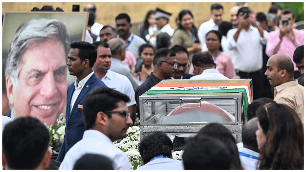 రతన్‌ టాటా అంతర్జాతీయ స్థాయి సంస్థను నెలకొల్పి లక్షలాది మందికి ఉపాధి కల్పించి, తన సంపాదనలో 60 శాతానికిపైగా పేదల సంక్షేమానికి ఖర్చు పెట్టారు. రెండు దశాబ్దాలకు పైగా టాటా గ్రూప్‌నకు అధిపతిగా ఉన్న రతన్ ఇటీవల తీవ్ర అనారోగ్యంతో దక్షిణ ముంబైలోని బ్రీచ్ క్యాండీ హాస్పిటల్‌లో చికిత్స పొందుతూ తుది శ్వాస విడిచారు. రతన్ టాటా, ఆయన తమ్ముడు జిమ్మీ ముంబయి డౌన్‌టౌన్‌లో నివసించే అమ్మమ్మ నవాజ్‌బాయి దగ్గర పెరిగారు. ఆయన పార్థివదేహాన్ని కడసారి చూసేందుకు వేల సంఖ్యలో నేతలు, ప్రముఖులు, అభిమానులు, ప్రజలు తరలివచ్చారు. ప్రముఖుల రాజకీయ నేతలు, అధికారులు కడసారిగా నివాళులు అర్పించారు.
